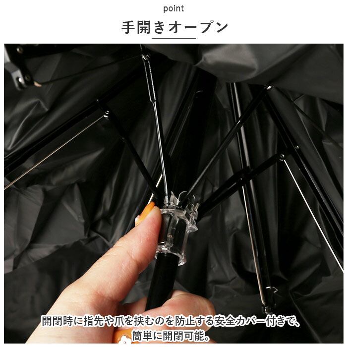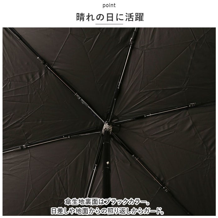 ・傘生地裏面はブラックカラー。日差しや地面からの照り返しからガード。