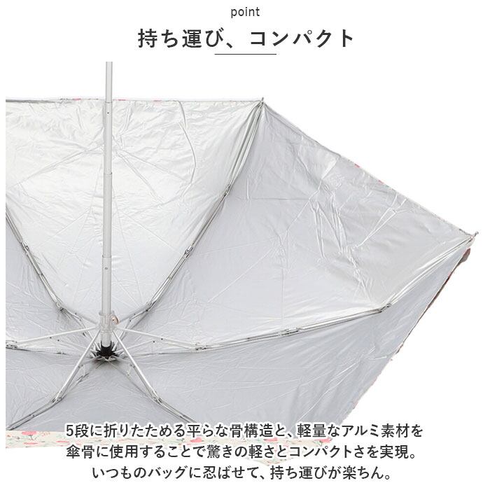 5段に折りたためる平らな骨構造と、軽量なアルミ素材を傘骨に使用することで驚きの軽さとコンパクトさを実現。いつものバッグに忍ばせて、持ち運びが楽ちん。
