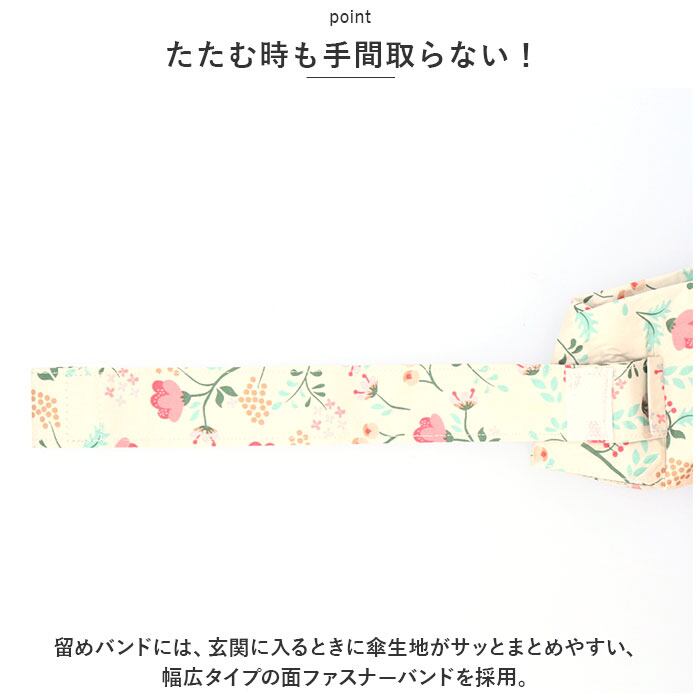 ・留めバンドには、玄関に入るときに傘生地がサッとまとめやすい、幅広タイプの面ファスナーバンドを採用。