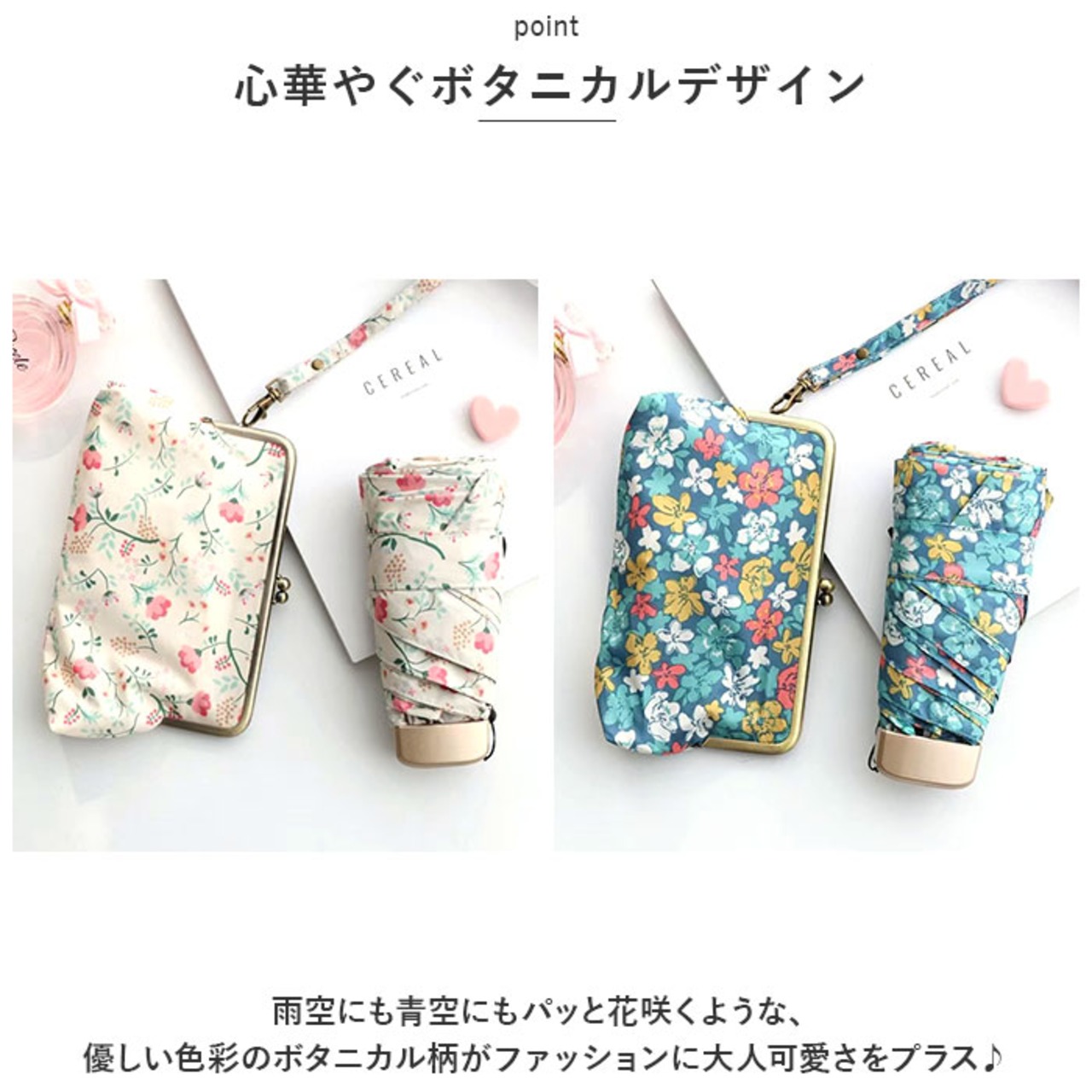 ・雨空にも青空にもパッと花咲くような、優しい色彩のボタニカル柄がファッションに大人可愛さをプラス♪