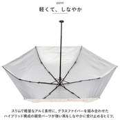 ・スリムで軽量なアルミ素材に、グラスファイバーを組み合わせたハイブリッド構成の親骨パーツが強い風をしなやかに受け止めるヒミツ。