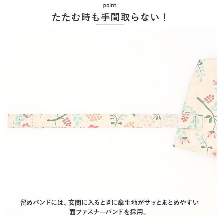 ・留めバンドには、玄関に入るときに傘生地がサッとまとめやすい面ファスナーバンドを採用。