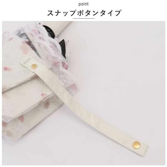 ・留めバンドには、玄関に入るときに傘生地がサッとまとめやすいスナップボタンタイプを採用。