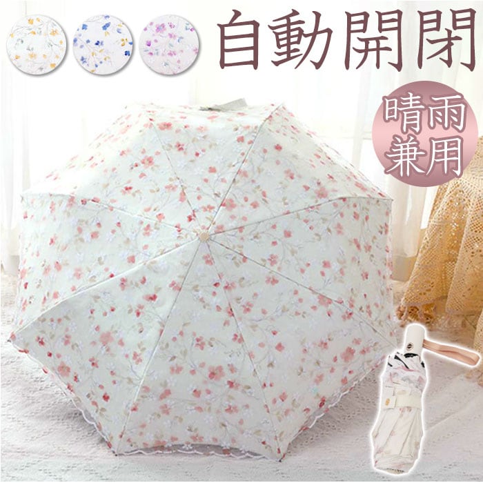 折りたたみ傘 レディース 通販 晴雨兼用 自動開閉 日傘 雨傘 かさ 傘 おりたたみ傘 折り畳み傘 紫外線対策 軽量 遮光 花柄 フラワー おしゃれ お洒落 かわいい 可愛い 母の日 ギフト