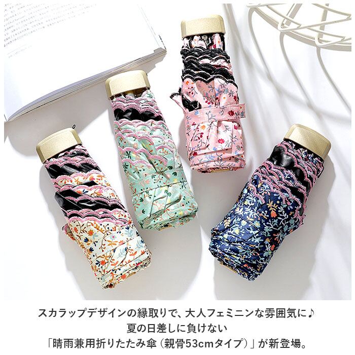 ・スカラップデザインの縁取りで、大人フェミニンな雰囲気に♪夏の日差しに負けない「晴雨兼用折りたたみ傘(親骨53cmタイプ)」が新登場。
