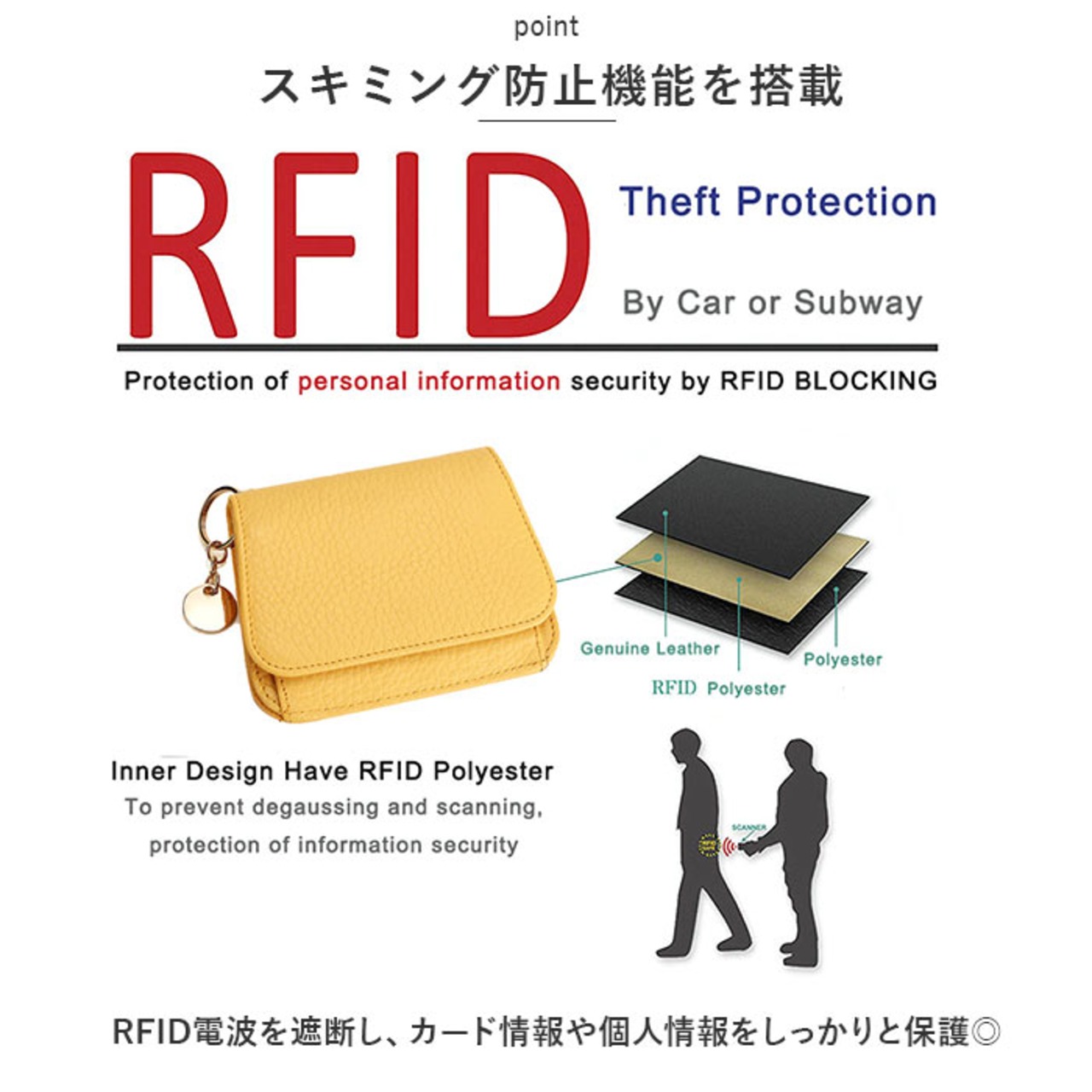 ・RFID電波を遮断し、カード情報や個人情報をしっかりと保護◎