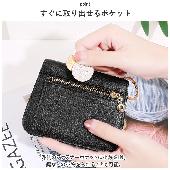 ・外側のファスナーポケットに小銭をIN。鍵などの小物を入れることも可能。