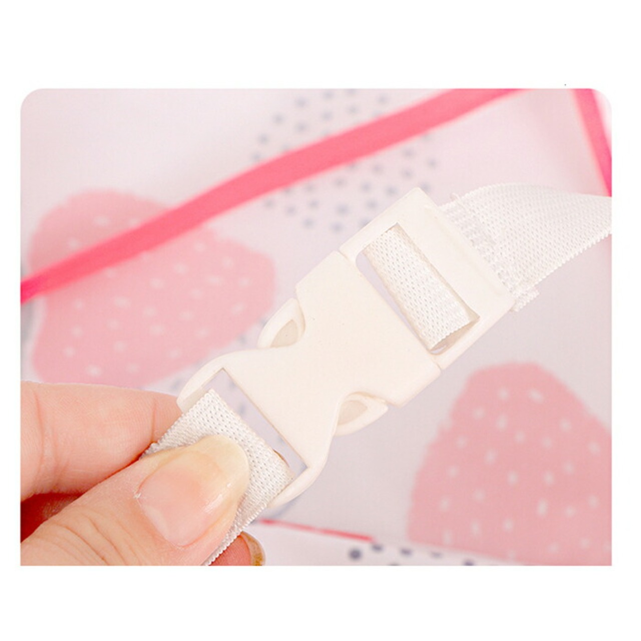 ・エプロンを首元の面ファスナーで装着し、紐とバックルベルトでイスに固定するだけ!ドローコードでフィット感も調節でき、サッと使える!