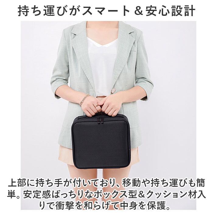 ・上部に持ち手が付いており、移動や持ち運びも簡単。安定感ばっちりなボックス型&クッション材入りで衝撃を和らげて中身を保護。
