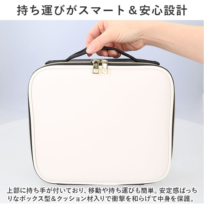 メイクボックス 大容量 通販 コスメボックス 化粧ボックス バニティケース バニティバッグ コスメケース 化粧品入れ 持ち運び 旅行 おしゃれ かわいい 手提げ 使いやすい 仕切り レザー ブラシ入れ 撥水 軽量 シンプル メイク コスメ 収納バッグ ネイル