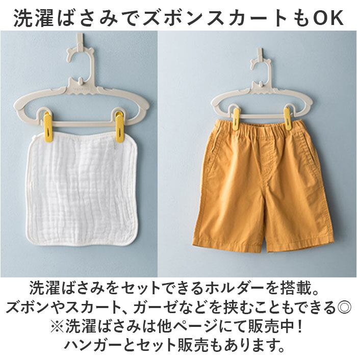 ・洗濯ばさみをセットできるホルダーを搭載。ズボンやスカート、ガーゼなどを挟むこともできる◎