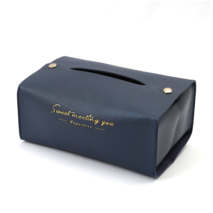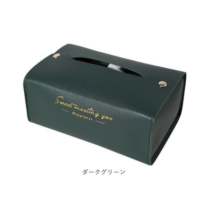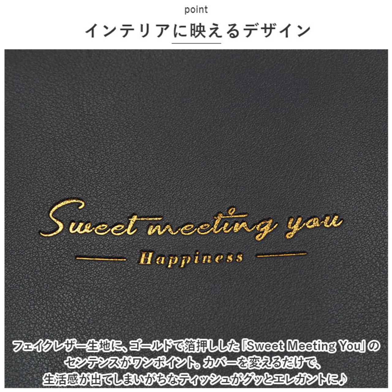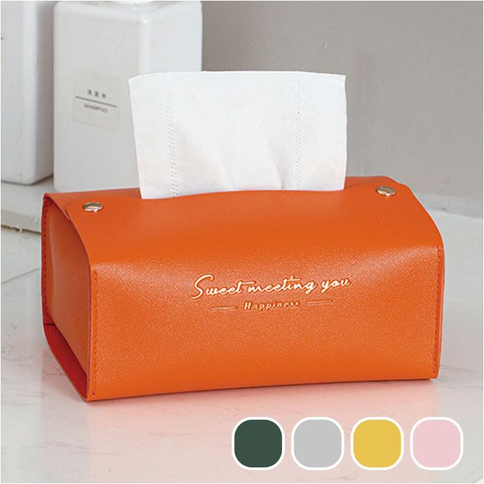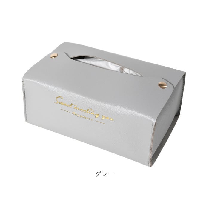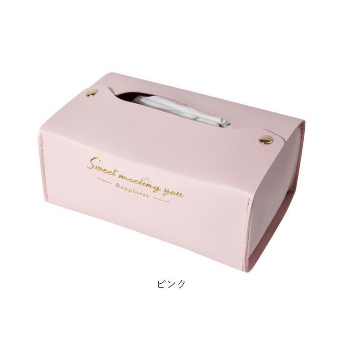 ・カラフルなフェイクレザー生地に、ゴールドで箔押しした「Sweet Meeting You」のセンテンスがワンポイント。カバーを変えるだけで、生活感が出てしまいがちなティッシュがグッとエレガントに♪