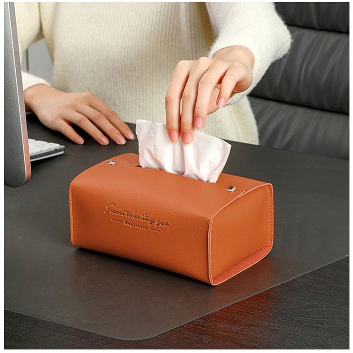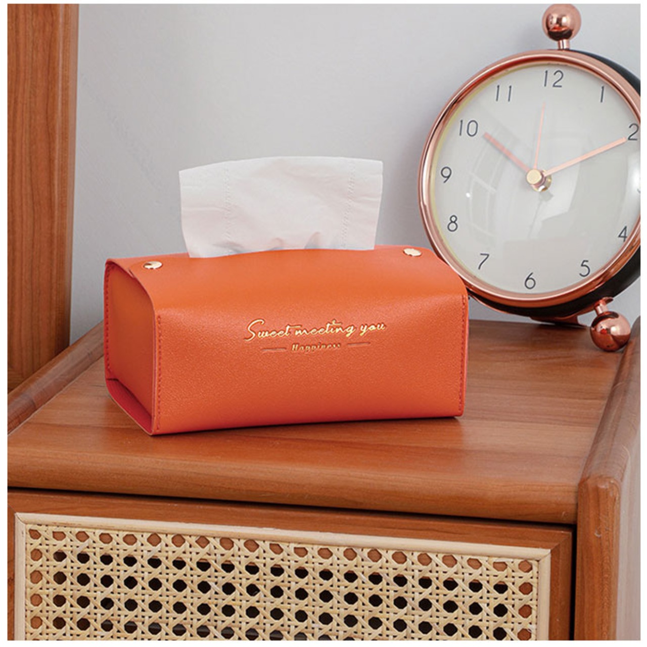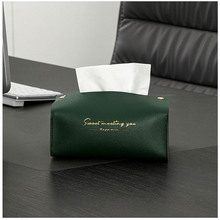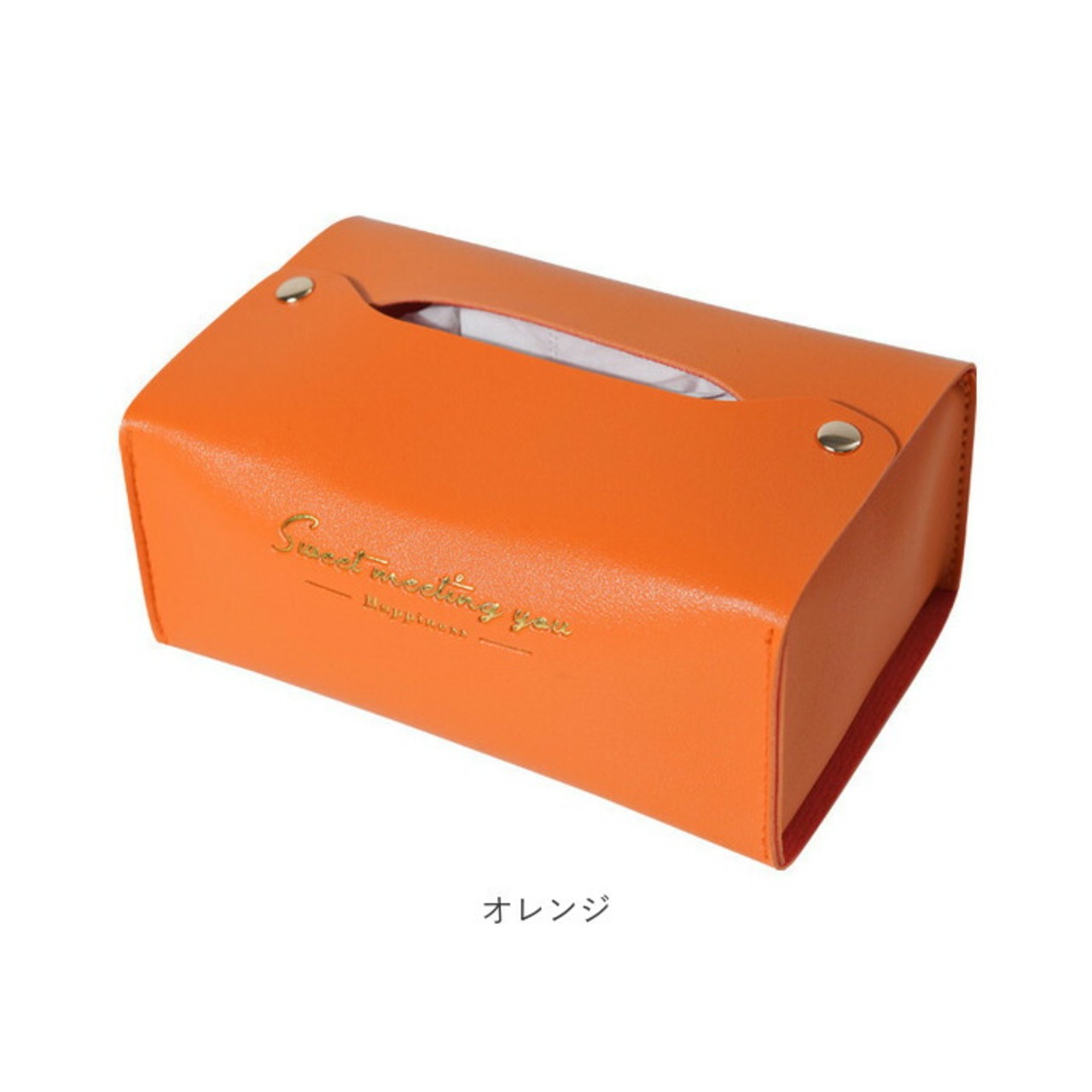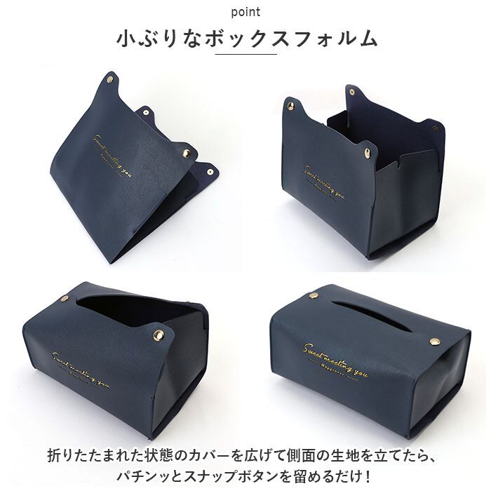 ・カラフルなフェイクレザー生地に、ゴールドで箔押しした「Sweet Meeting You」のセンテンスがワンポイント。カバーを変えるだけで、生活感が出てしまいがちなティッシュがグッとエレガントに♪