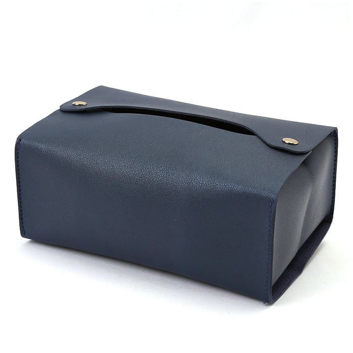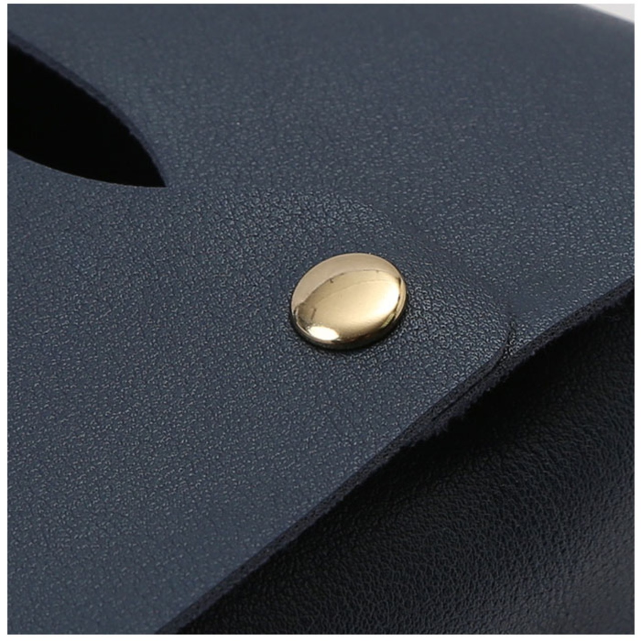 ・開口部は開け閉めがスムーズにできるスナップボタンタイプ。上からティッシュペーパーのリフィルをポンッと収納するだけで、詰め替え作業が完了!(※ボックスタイプのティッシュはそのまま収納できません。箱から詰め替えてご使用になるか、ソフトパックタイプのティッシュのご利用をお勧めします。)