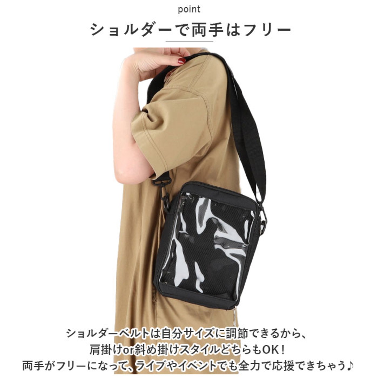 ・ショルダーベルトは自分サイズに調節できるから、ちょこんと肩掛けor斜め掛けスタイルどちらもOK!両手がフリーになって、ライブやイベントでも全力で応援できちゃう♪