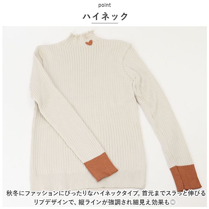 ・秋冬にファッションにぴったりなハイネックタイプ。首元までスラっと伸びるリブデザインで、縦ラインが強調され細見え効果も◎