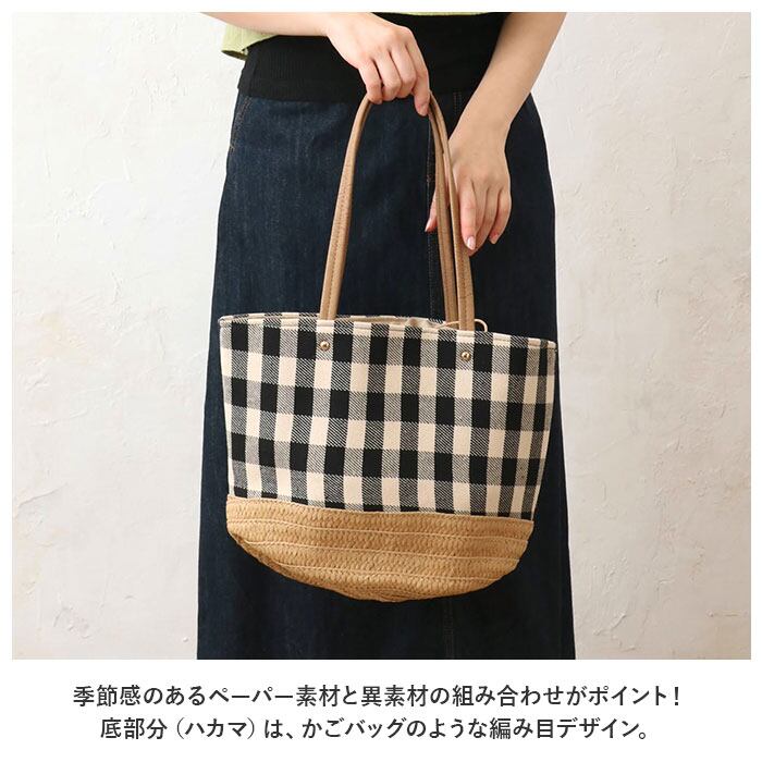 ・季節感のあるペーパー素材と異素材の組み合わせがポイント!底部分(ハカマ)は、かごバッグのような編み目デザイン。