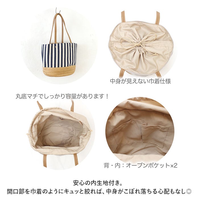 ・安心の内生地付き。開口部を巾着のようにキュッと絞れば、中身がこぼれ落ちる心配もなし◎