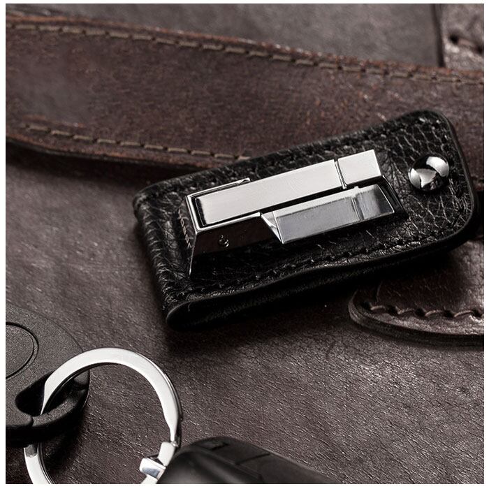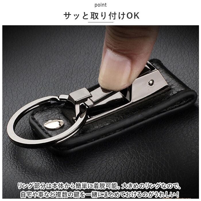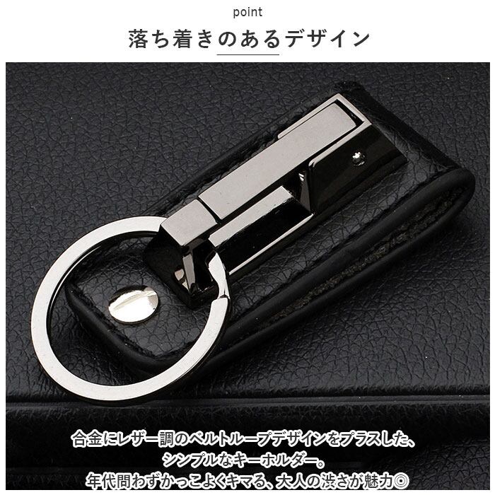 ・合金にレザー調のベルトループデザインをプラスした、シンプルなキーホルダー。年代問わずかっこよくキマる、大人の渋さが魅力◎