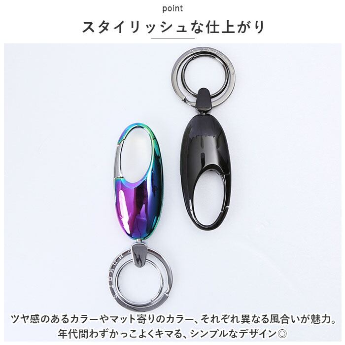・上部のカラビナを使って、カバンやボトムスのベルトループに引っ掛けOK。鍵が迷子になりにくく、必要な時にサッと取り出せるのが嬉しい!