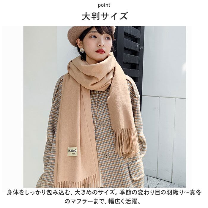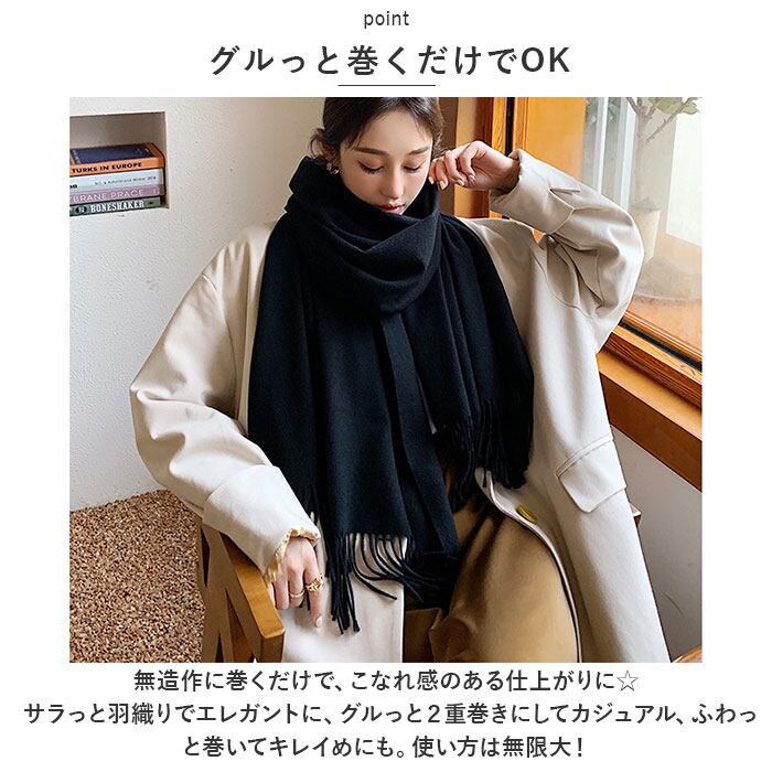 ・身体をしっかり包み込む、大きめのサイズ。季節の変わり目の羽織り~真冬のマフラーまで、幅広く活躍。