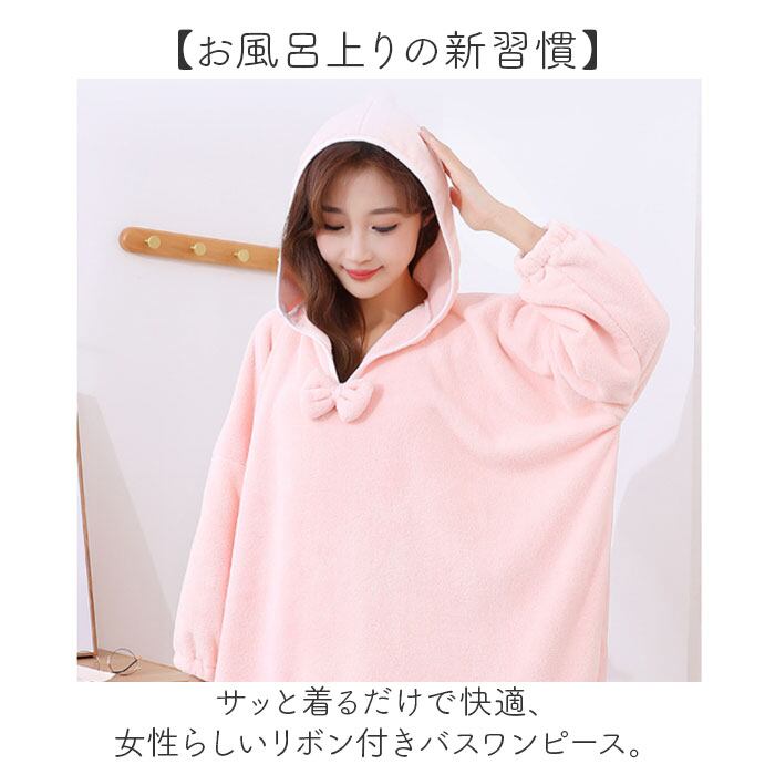 【お風呂上りの新習慣】サッと着るだけで快適、女性らしいリボン付きバスワンピース。