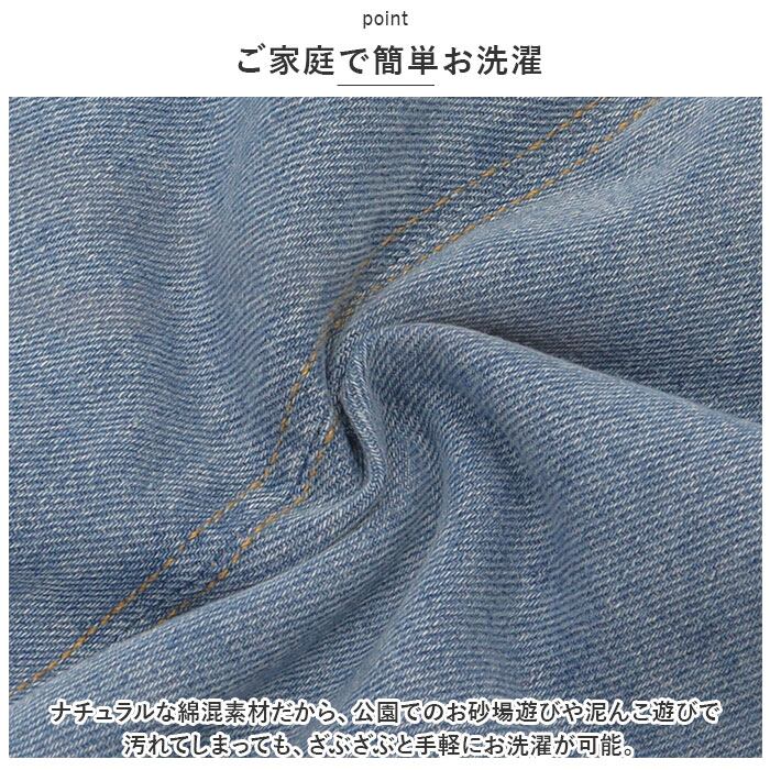 ・くったりと柔らかなデニム素材と、締め付け感のないゆったりシルエットで、動きやすさも抜群。活発なキッズの身体に優しいつくり。