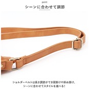 ・ショルダーベルトは長さ調節ができ肩掛けや斜め掛け、シーンに合わせてスタイルを選べる!