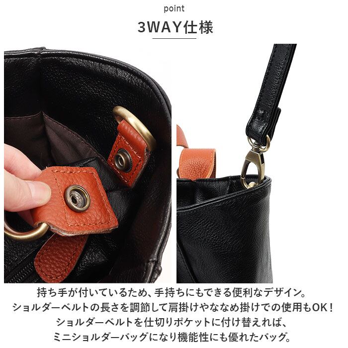・ショルダーベルトを仕切りポケットに付け替えれば、ミニショルダーバッグになり機能性にも優れたバッグ。