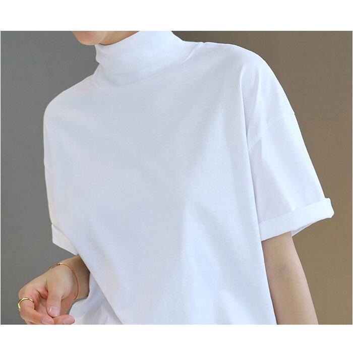 Tシャツ レディース 半袖シャツ 通販 tシャツ シャツ 半袖Tシャツ 半袖tシャツ カットソー タートルネック ハイネック 半袖 綿100% 綿100 綿 コットン ゆったり ベーシック カジュアル 春 夏 冬 シンプル 無地 トップス おしゃれ