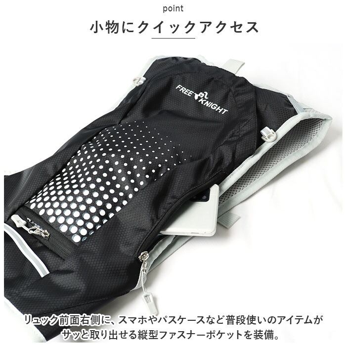 ・軽量な生地使いと、ベストのようなスマートなフォルムで、ドリンクやスマホなどの必須アイテムを競技に影響を与えずにラクラク持ち運べる!