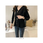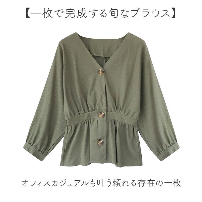 ・前ボタンを閉めればブラウスに、開ければ羽織りとしても活躍、ウエストのギャザーでスタイルアップも♪