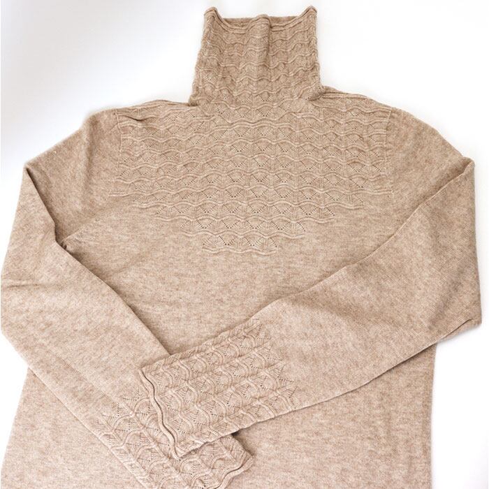 ・首元、袖に控えめな凹凸感のレースニットで、上品な仕上がり。
