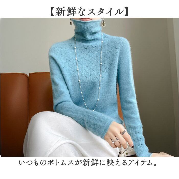 ・上品なレース模様とゆるっとしたデザインで、秋冬の女性らしさを引き立てるアイテム。
