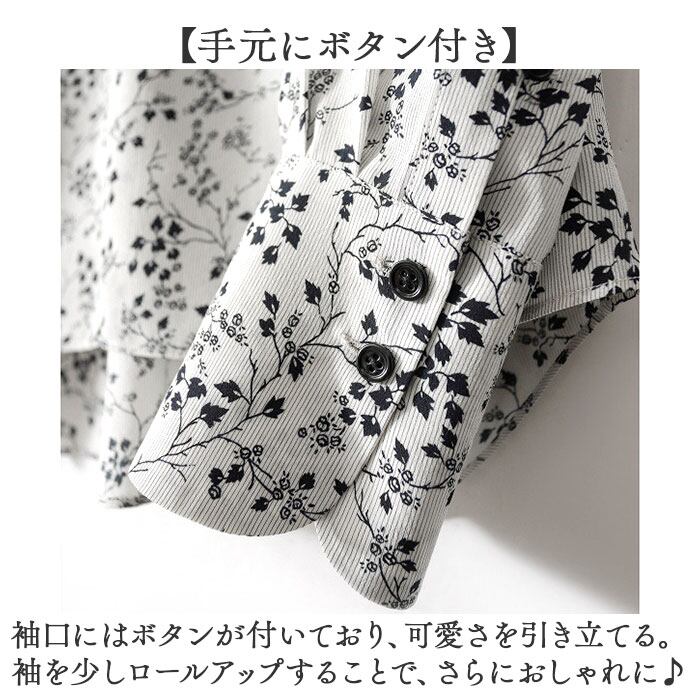 ・袖口にはボタンが付いており、可愛さを引き立てる。袖を少しロールアップすることで、さらにおしゃれに♪
