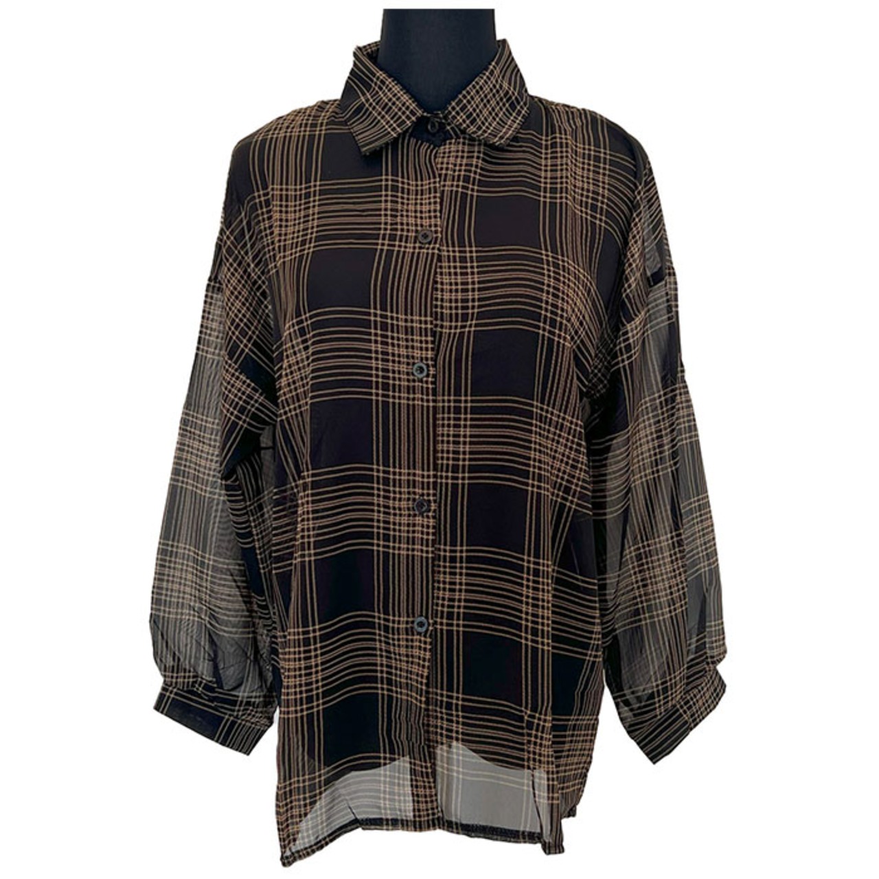 長袖チェックシアーシャツブラウス