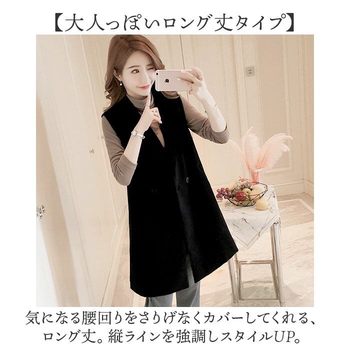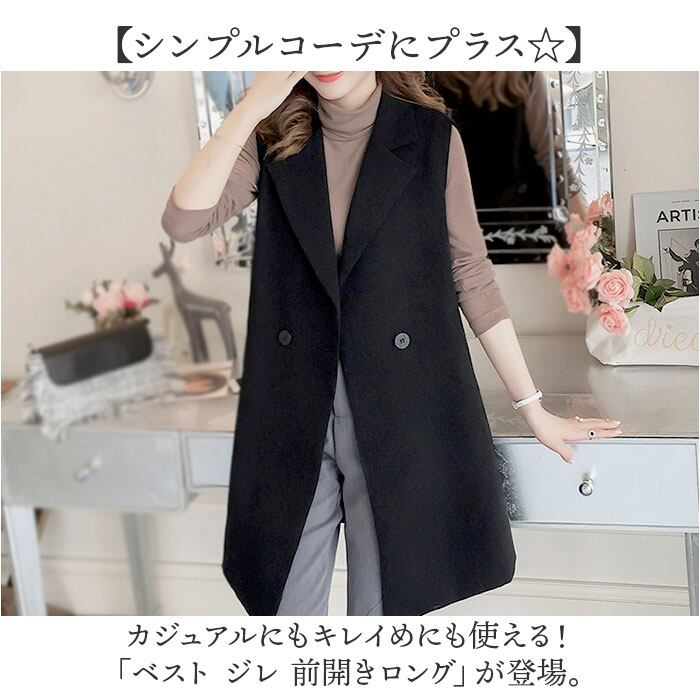 ロング ジレ レディース 通販 ベスト ロングジレ チョッキ ウェストコート ロング丈 ノースリーブ はおりもの 羽織り きれいめ 体型カバー フォーマル 秋冬 春秋 おしゃれ かわいい 前開き 前あき シンプル 無地 オシャレ トップス レディースファッション
