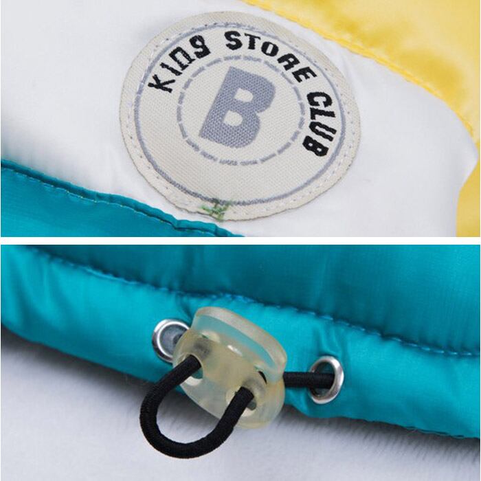 ・人のダウンを着たような、本格的な着こなしができる。フードはボタンで留められる!
