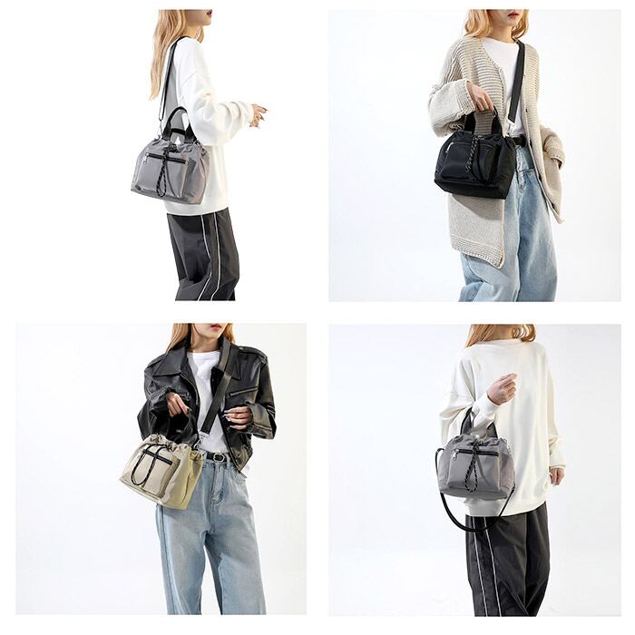巾着バッグ ショルダー フロントファスナーポケット 2way