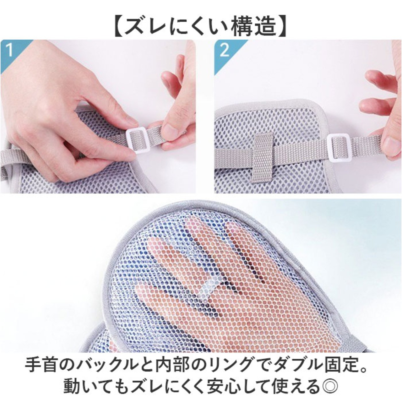 ・手首のバックルと内部のリングでダブル固定。動いてもズレにくく安心して使える◎