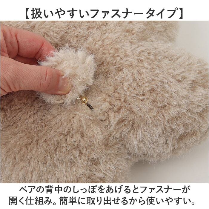 ・ベアの背中のしっぽをあげるとファスナーが開く仕組み。簡単に取り出せるから使いやすい。