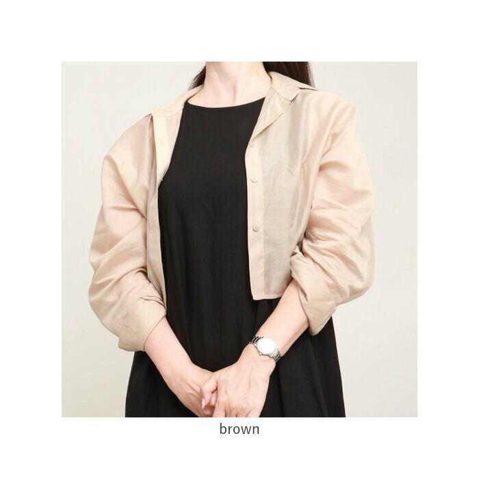 ・丈は短めなので、ボタンは留めずにワンピースやパンツに羽織ってお召しいただいた方が綺麗なバランスに。