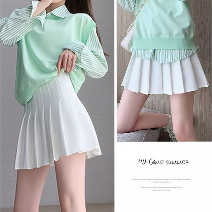 ・インナー付きで安心、上品なプリーツで脚長効果抜群