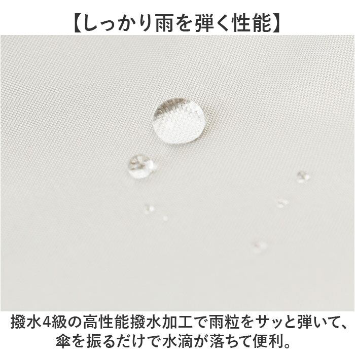 ・撥水4級の高性能撥水加工で雨粒をサッと弾いて、傘を振るだけで水滴が落ちて便利。
