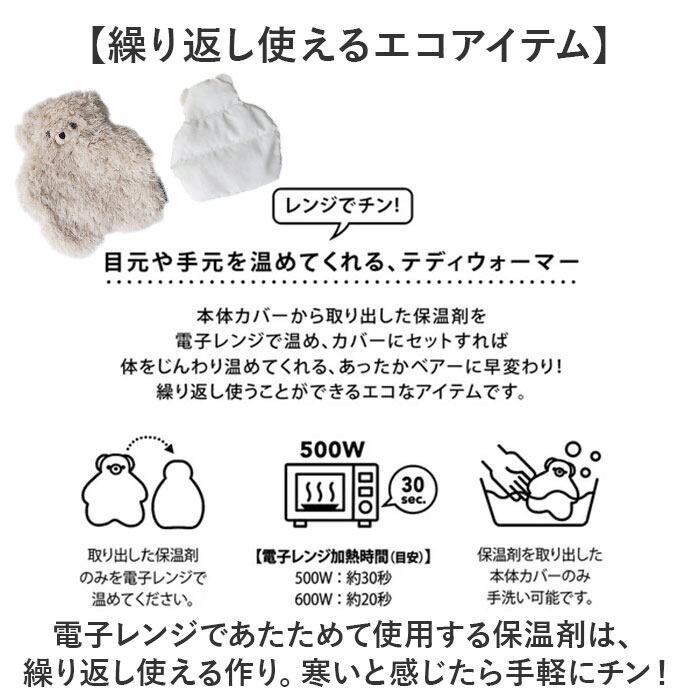 ・電子レンジであたためて使用する保温剤は、繰り返し使える作り。寒いと感じたら手軽にチン!
