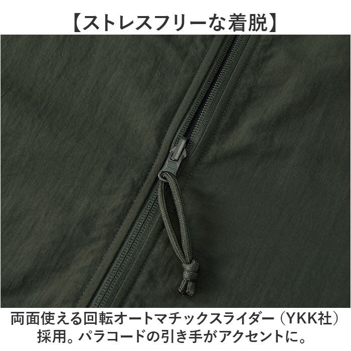 ・両面使える回転オートマチックスライダー(YKK社)採用。パラコードの引き手がアクセントに。