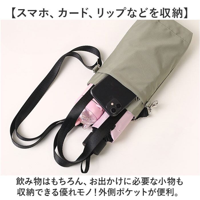 ・飲み物はもちろん、お出かけに必要な小物も収納できる優れモノ!外側ポケットが便利。