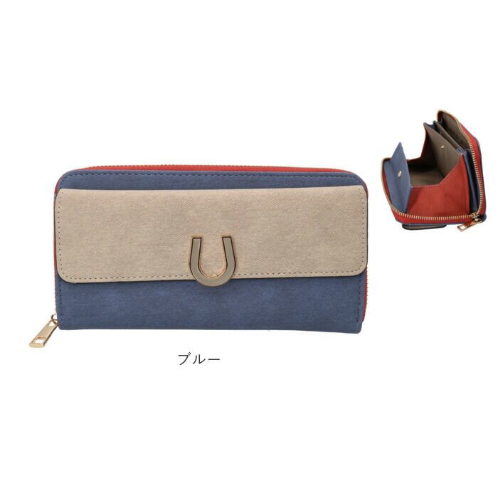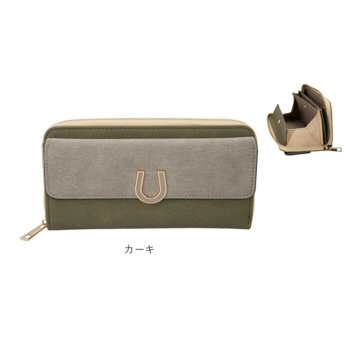 ・落ち着きのある配色に幸運モチーフの馬蹄型パーツをあしらった、長財布が登場。