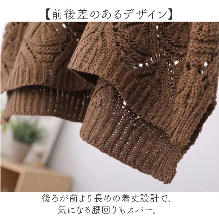 ・ダイヤ柄の透かし編みで、季節を問わず着回せる〇