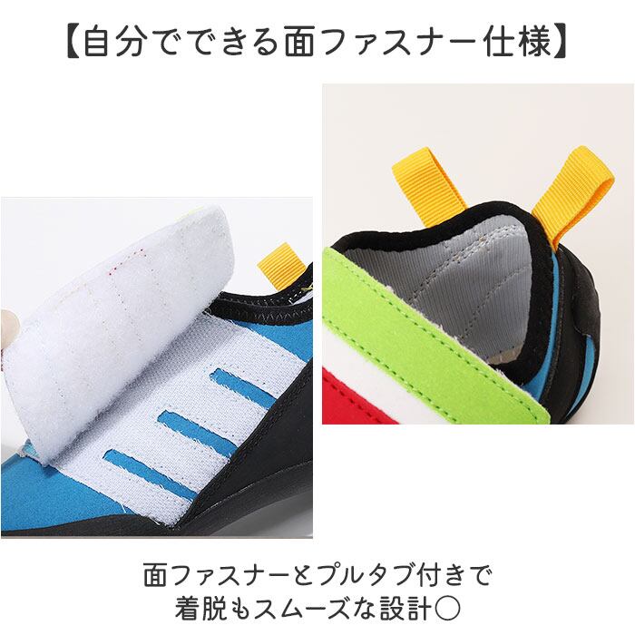・面ファスナーとプルタブ付きで着脱もスムーズな設計〇